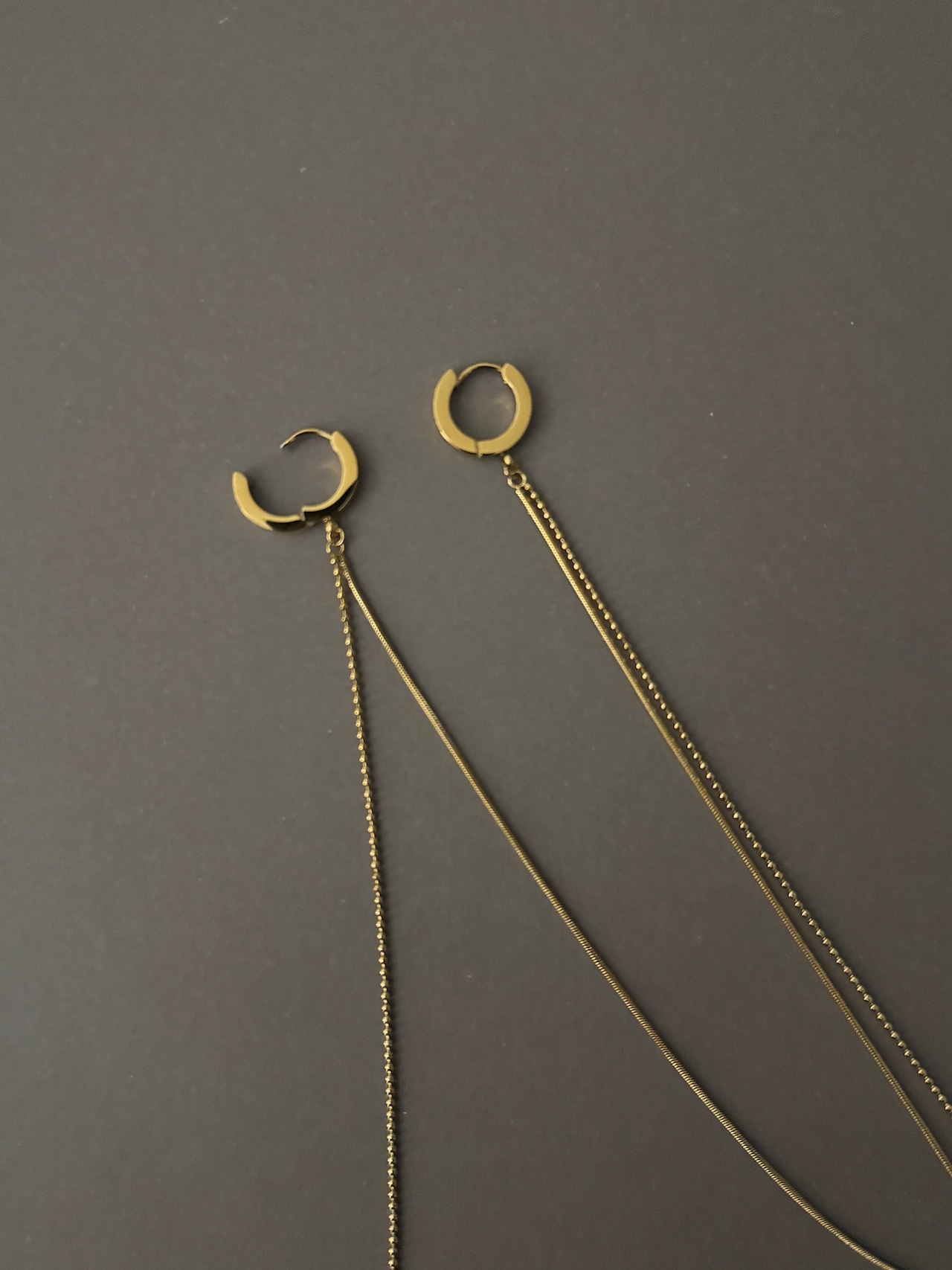《ステンレス・18K》ゴールドロングチェーンピアス