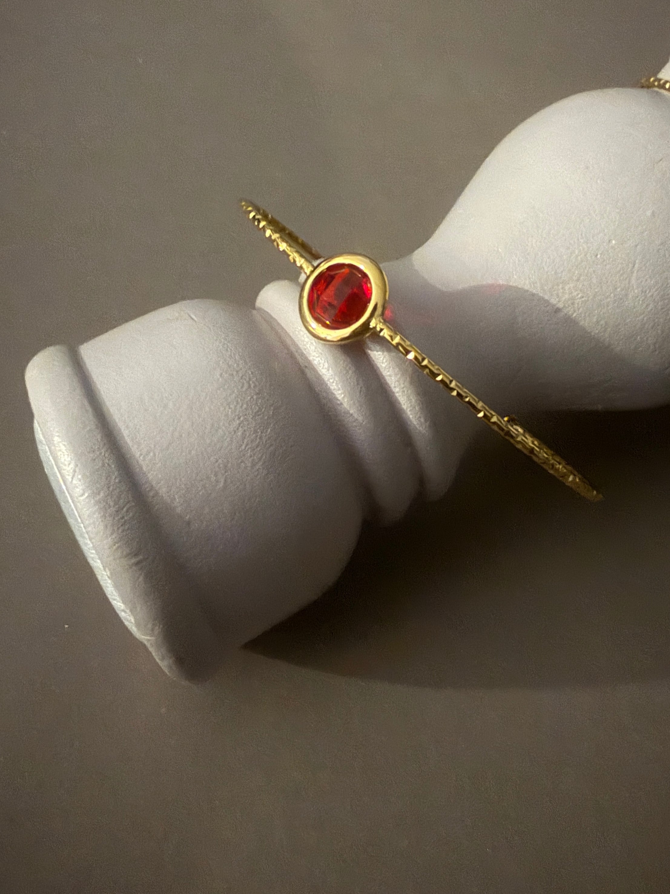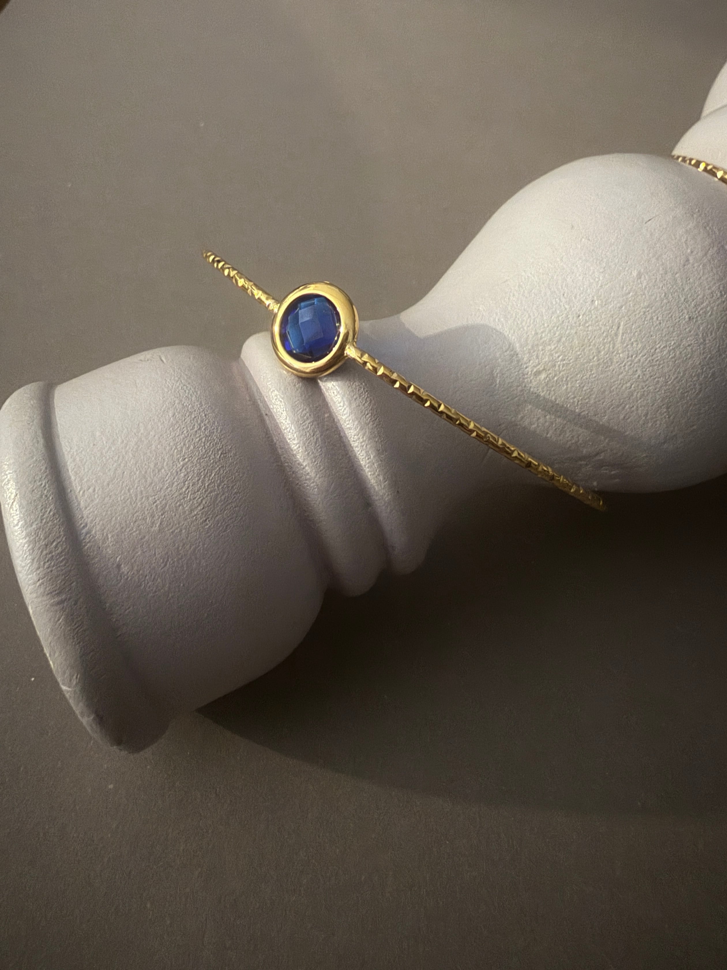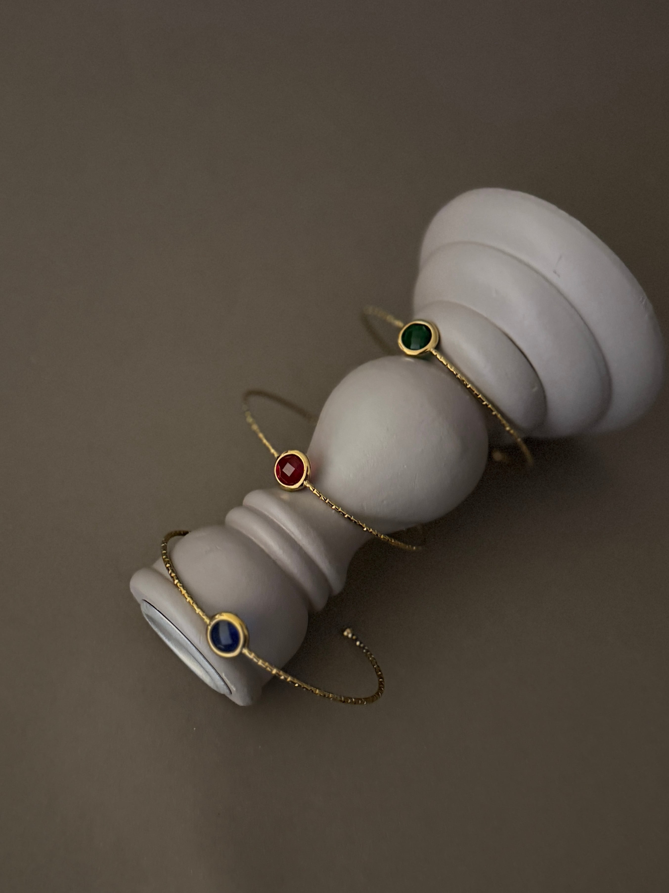 華奢なラインの中央にチェコガラスをはめ込んだバングル