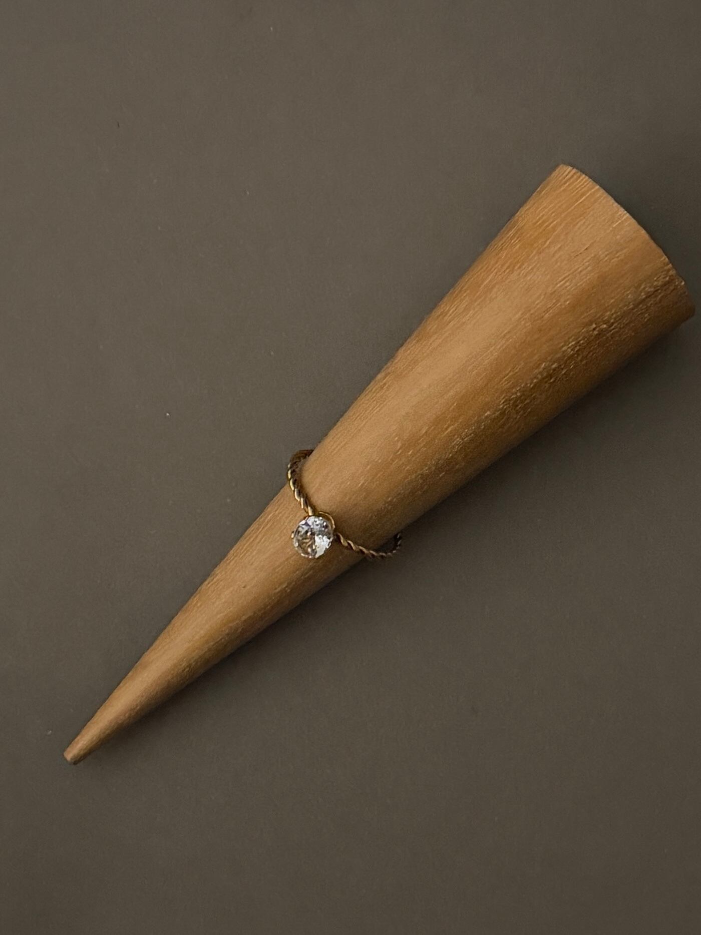 華奢なツイストリングにオーバルのジルコニアが一粒