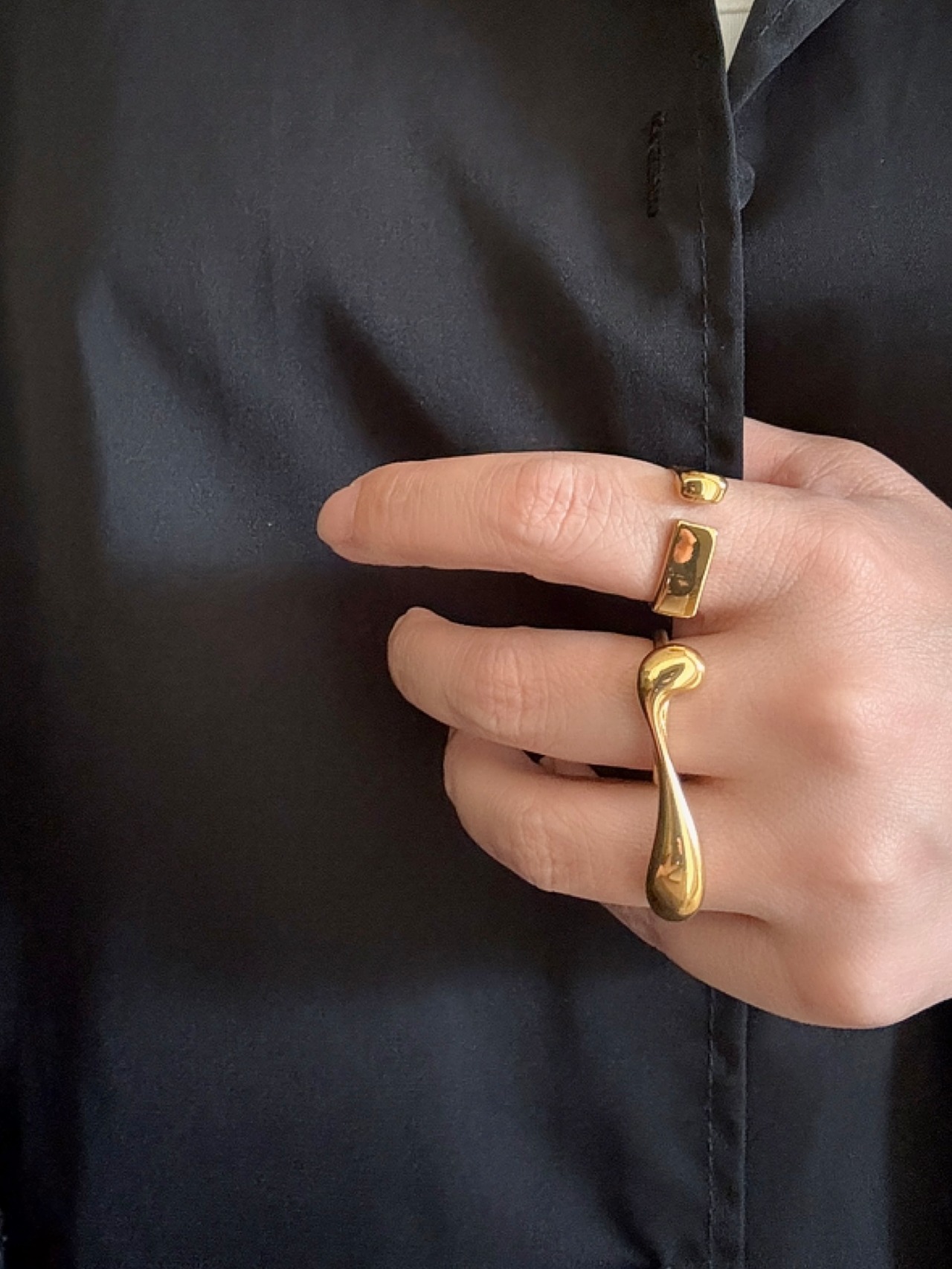 ・華奢で上品というよりも、カッコいいクールな演出をしてくれるリングなのでパンツスタイルが多い方ですと合わせやすいと思います!