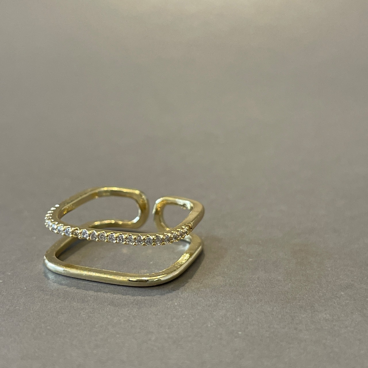 シンプルなフレームと、ジルコニアが並んだ2種類のラインで重ね付けしたようにも見えるリング。