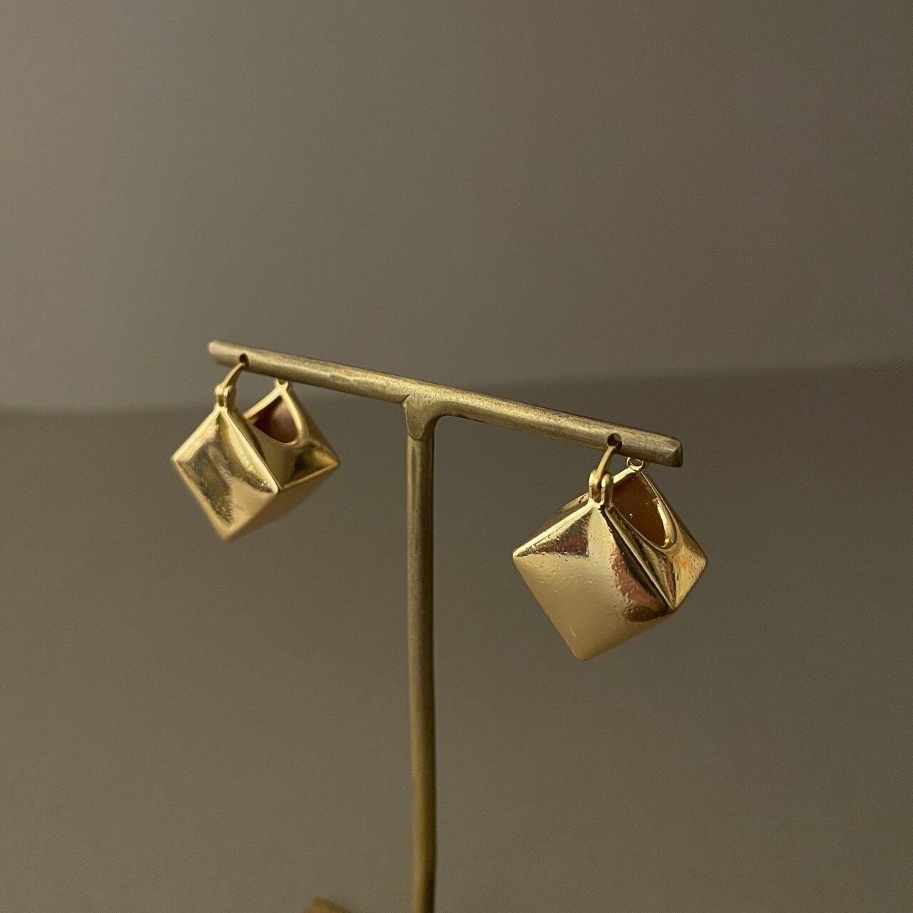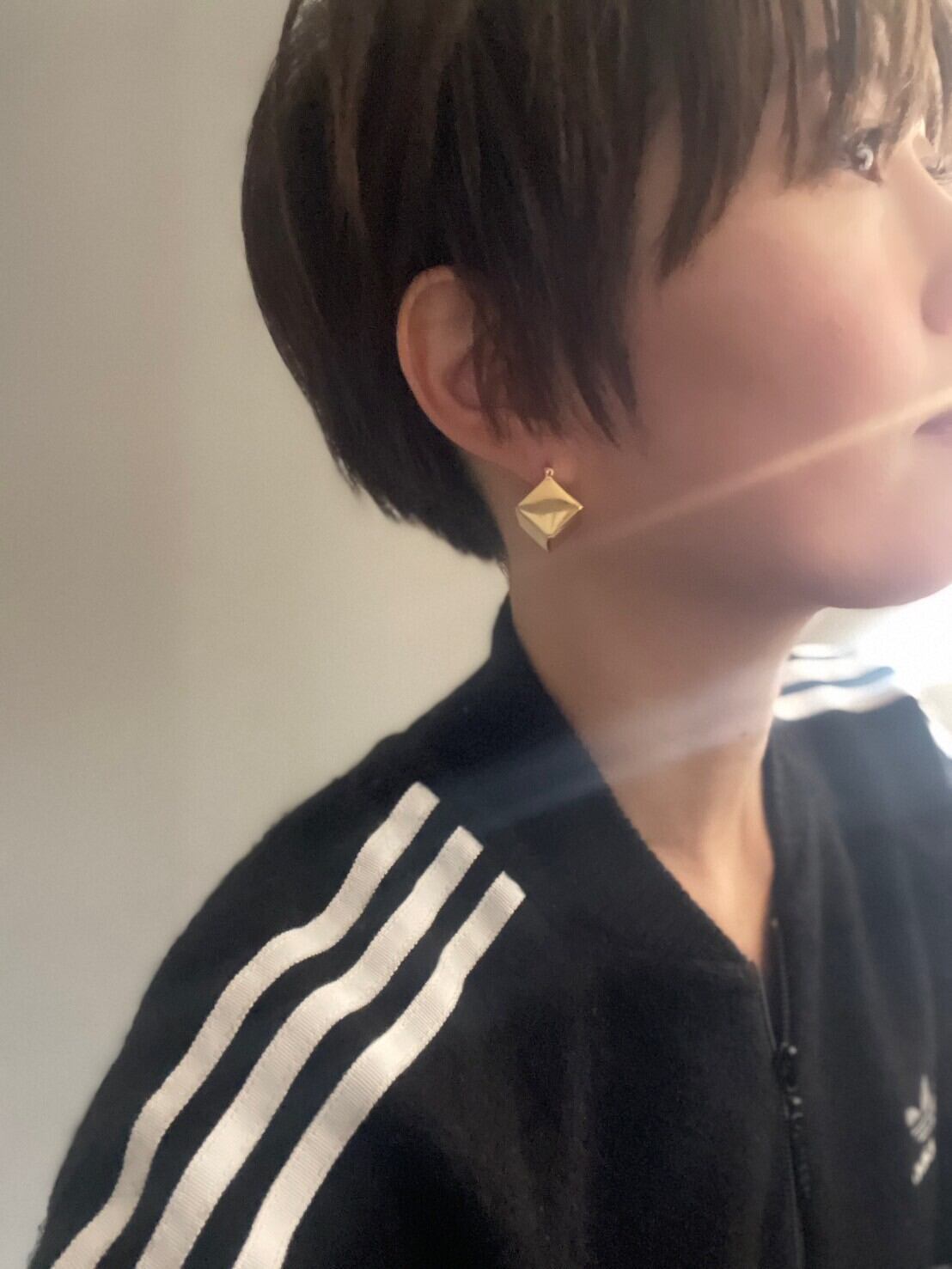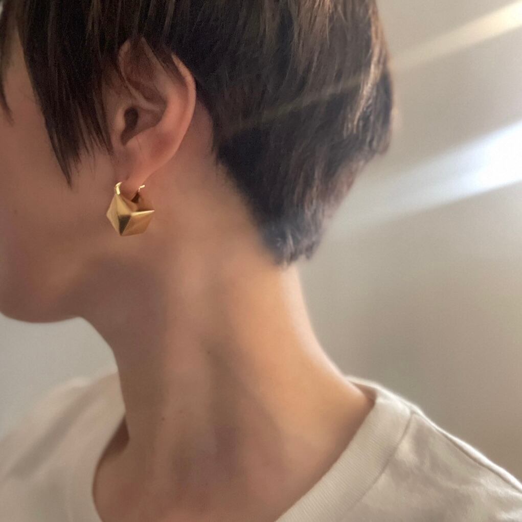 ツヤのあるゴールドで高級感のあるキューブ型ピアス。