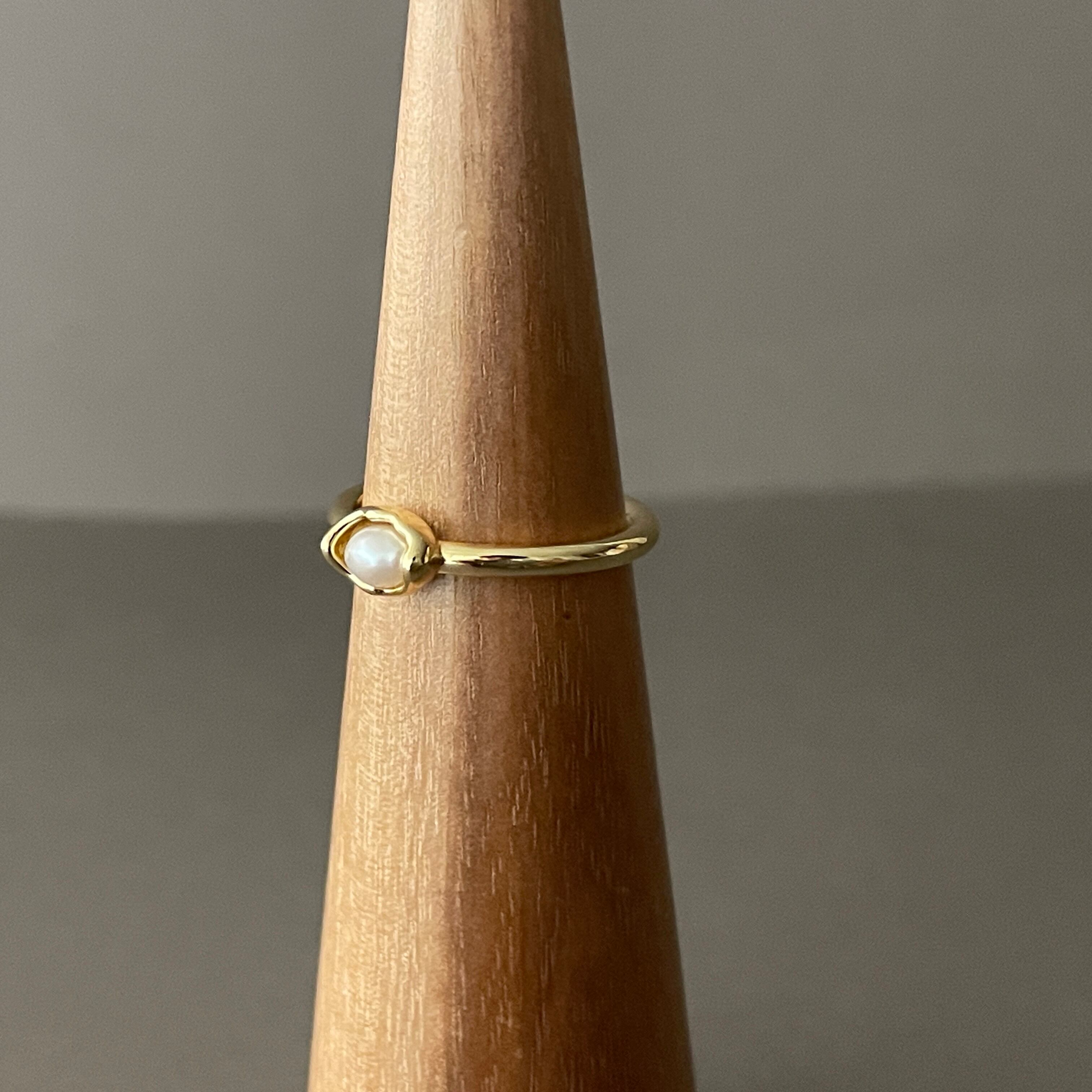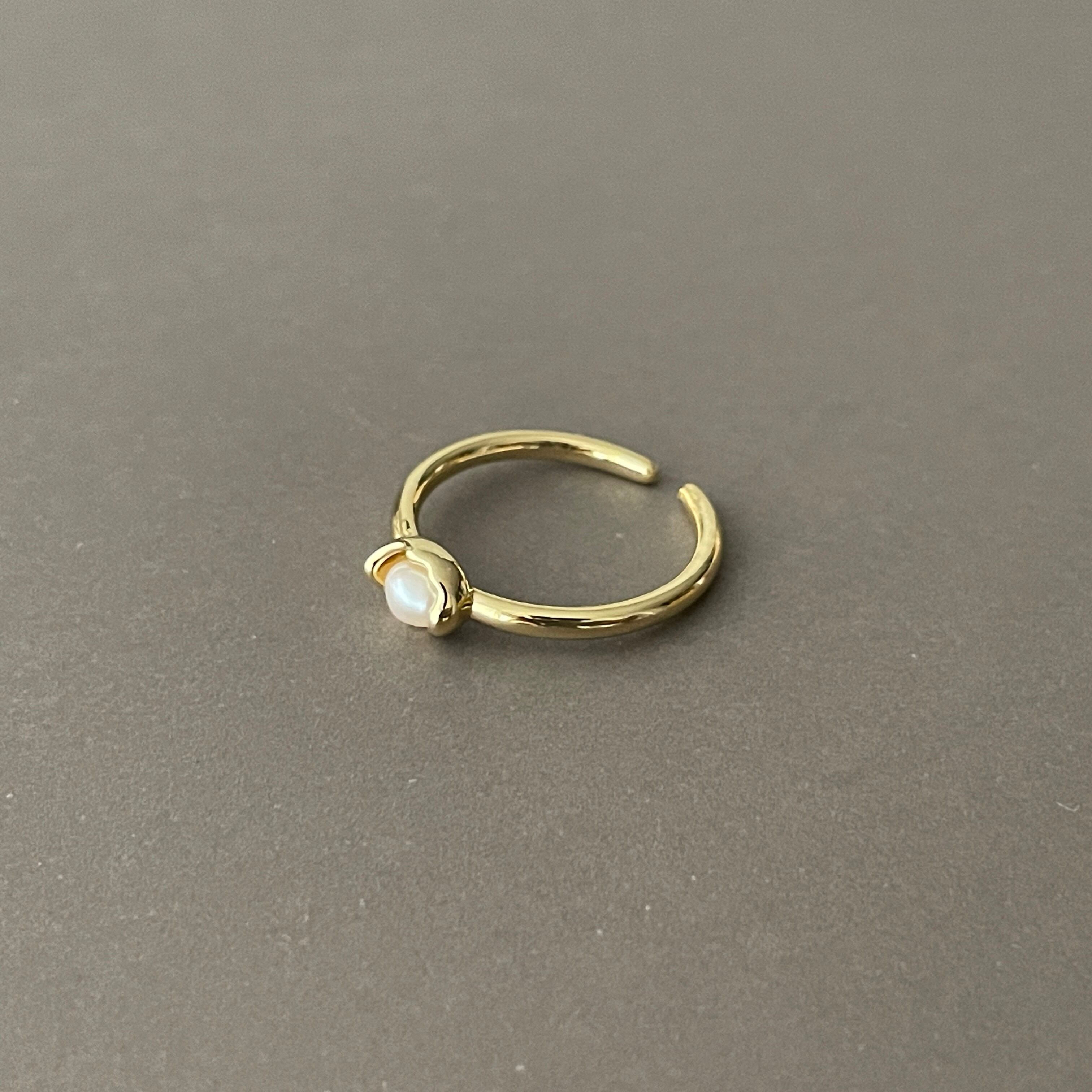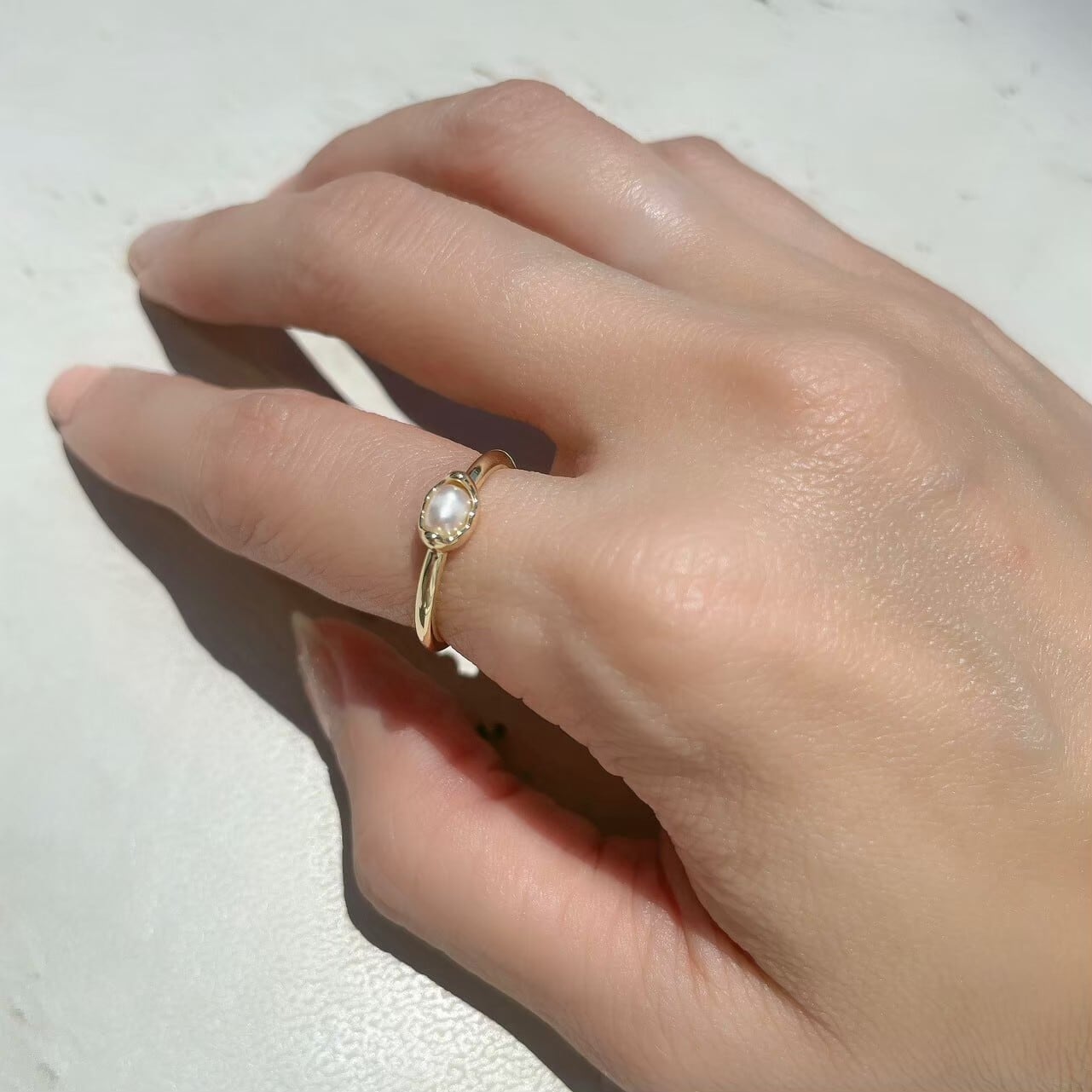 ゴールドのフレームに小さめな一粒パールがよく映え、さりげなく手元を飾ります。