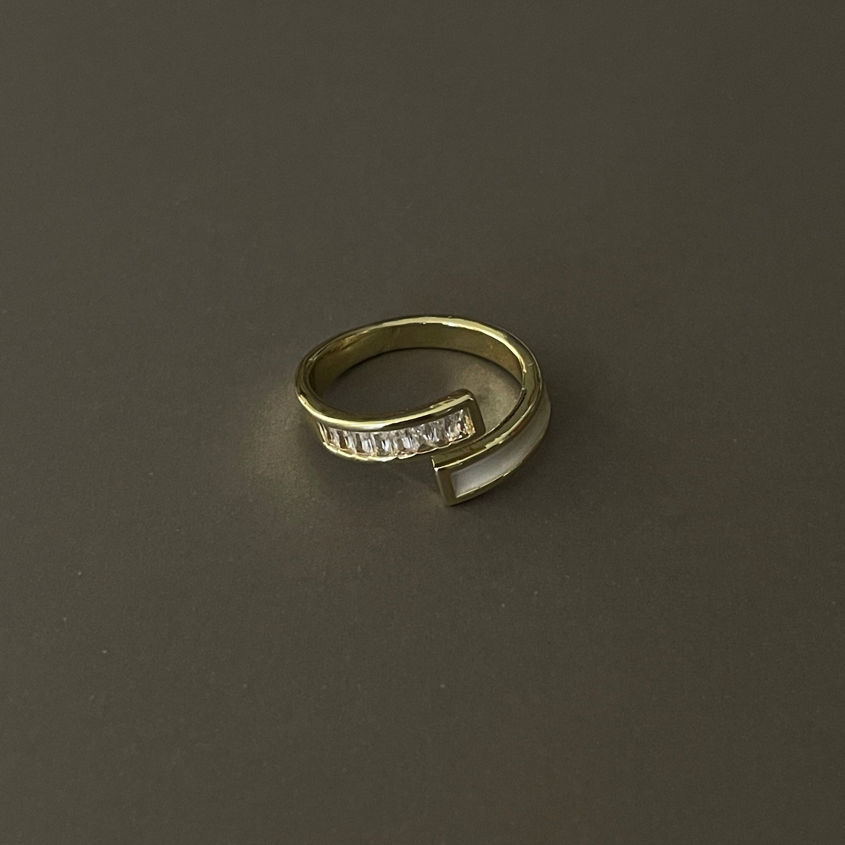 ジルコニアが上品さを、ホワイトマーブルの部分がが可愛らしさを演出してくれ、手元を華やかに飾ります。