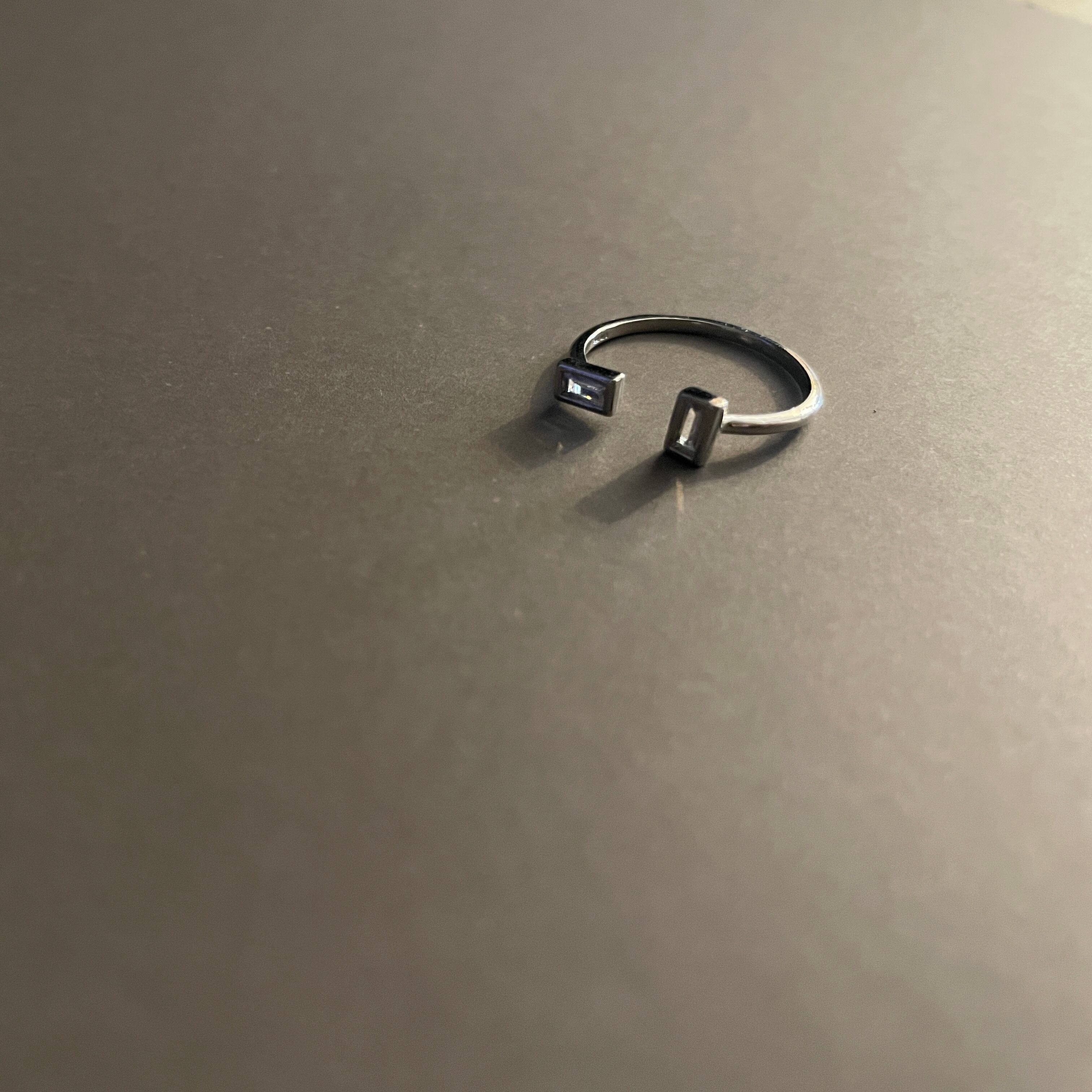 ジルコニアが両サイドで指を包むようなデザインリング。