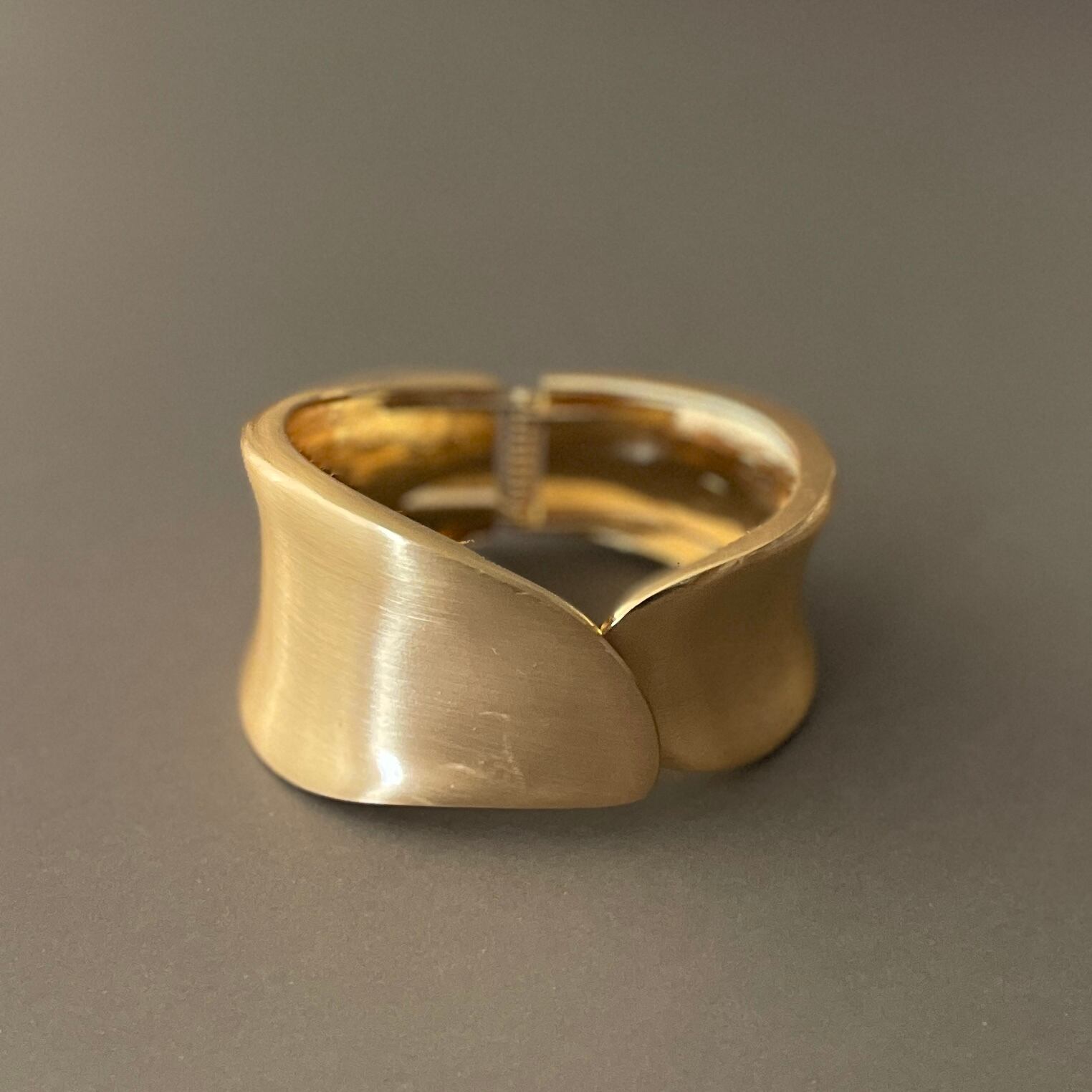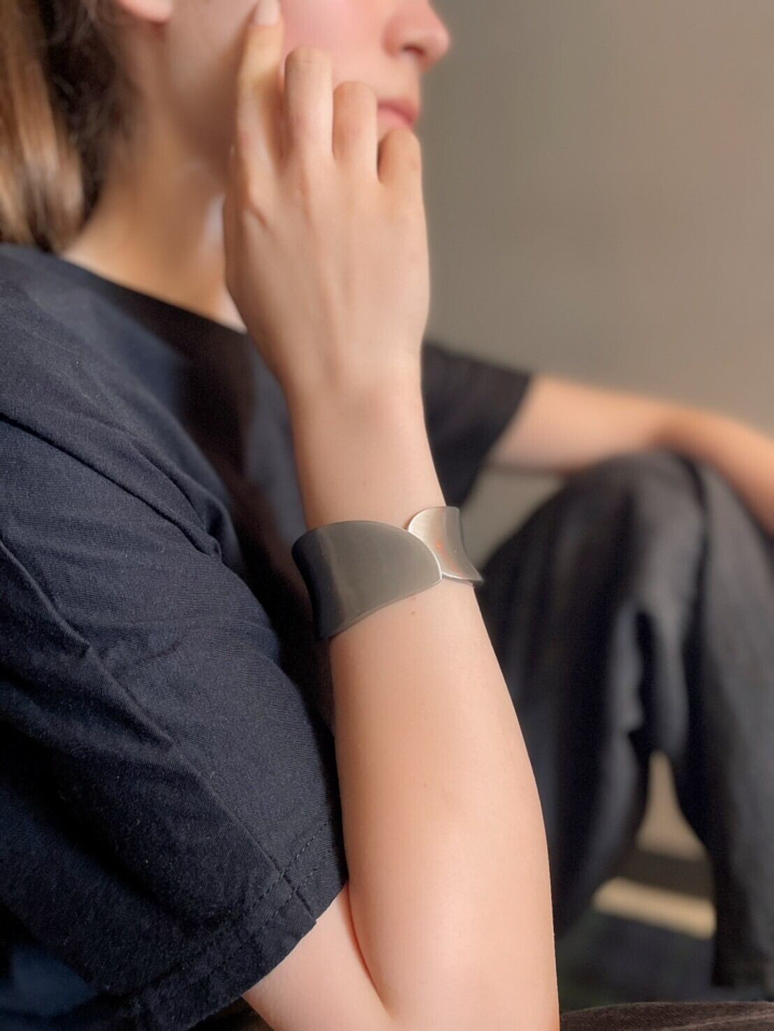 幅広でボリューム感があるので、夏は肌に直接、秋冬は服の上からでもワンポイントやアクセントになるバングル。
