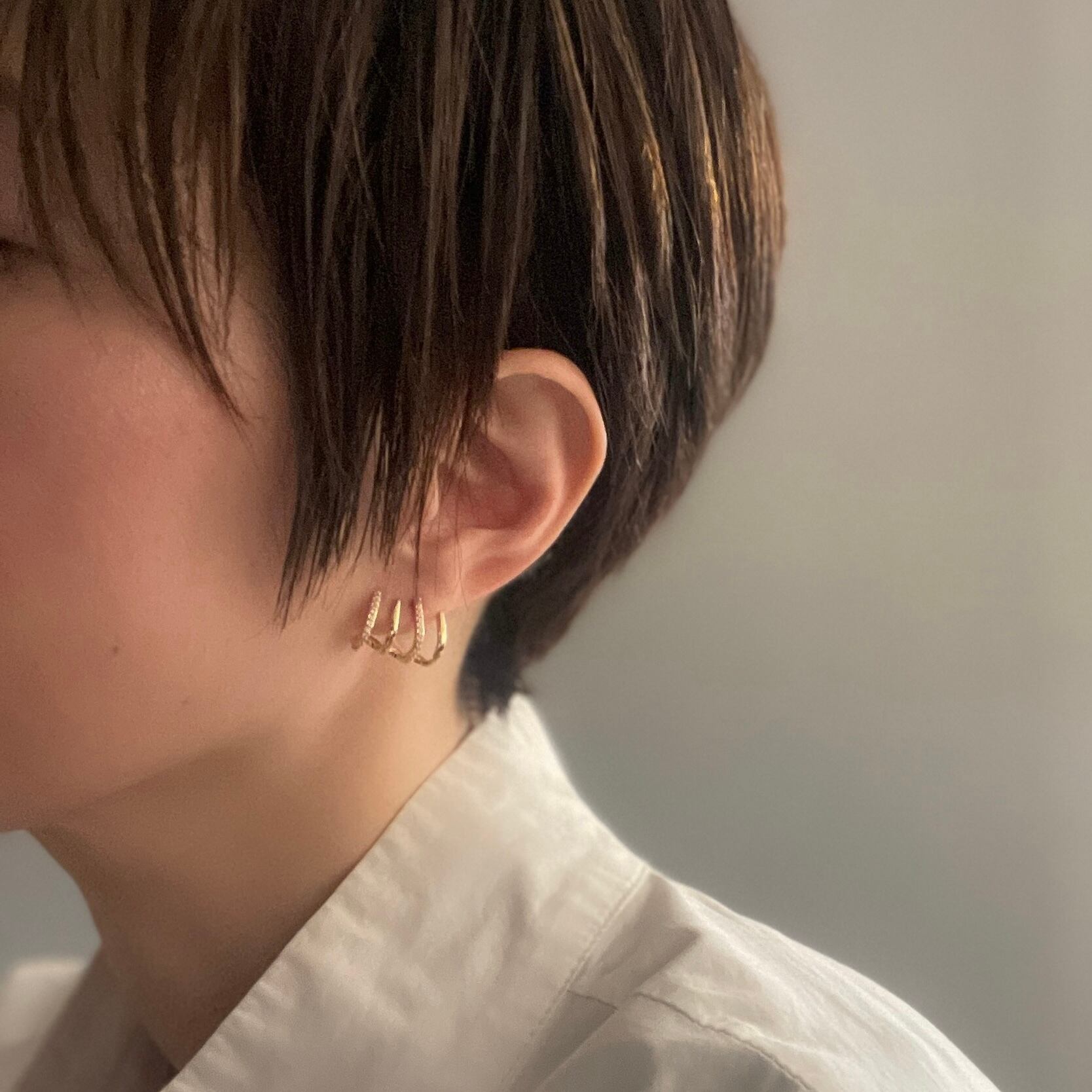 ・あまりロングピアスがお好きでない方は、少しボリュームのあるこのピアスが使いやすい!大きめのトレーナーにパンツ、スニーカーなんてコーデにちょっとだけキラッと感を入れて大人カジュアルを楽しむのも◎