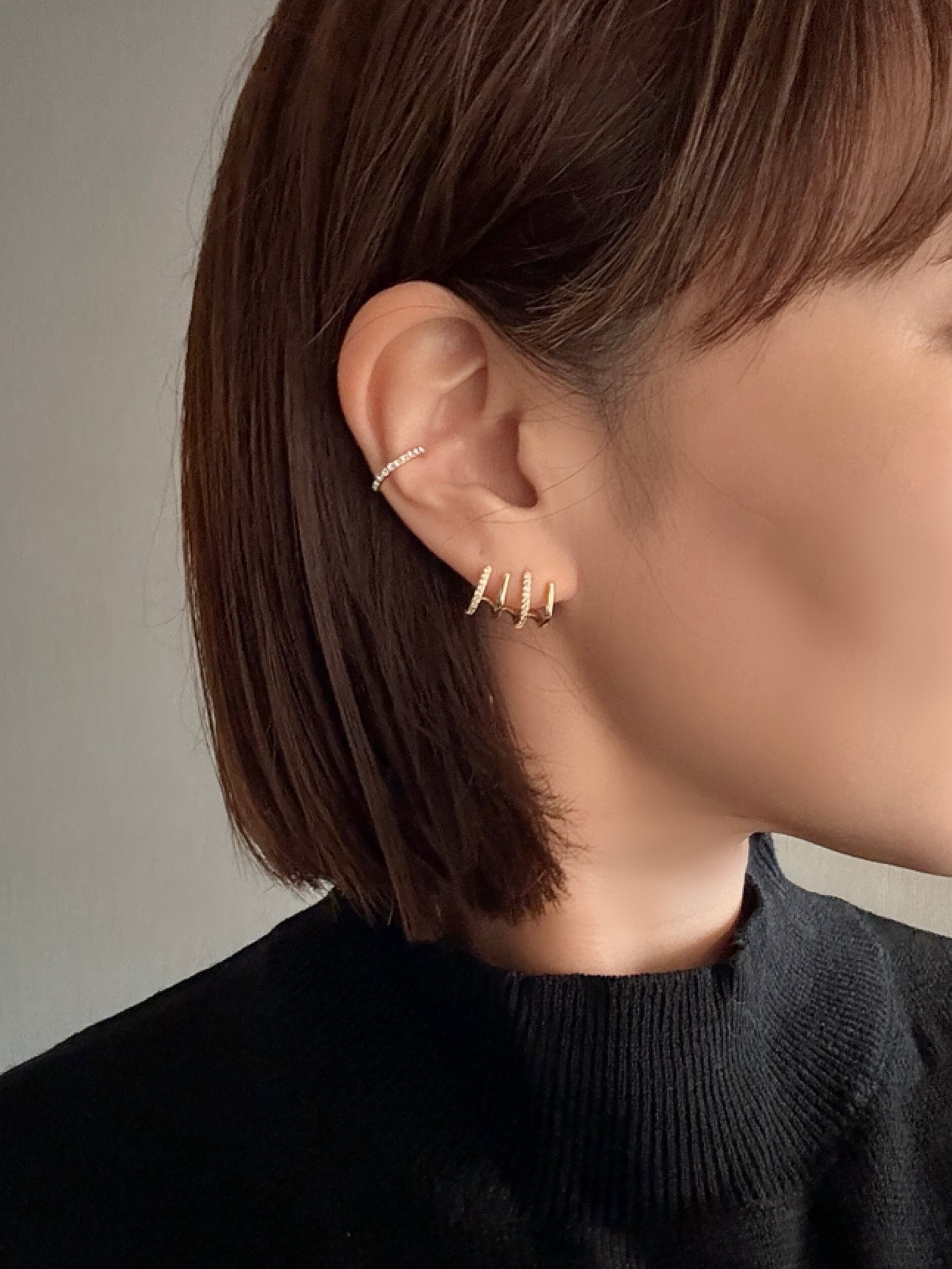 耳たぶを包むように並んだフレームにはジルコニアがキラリと光ます。