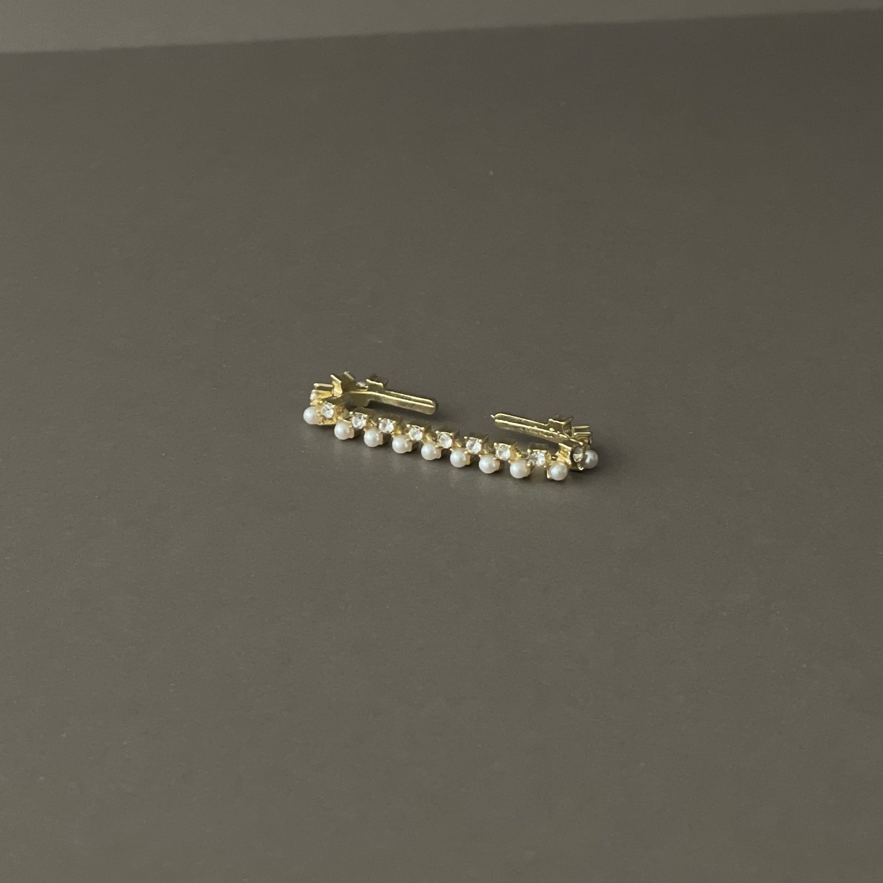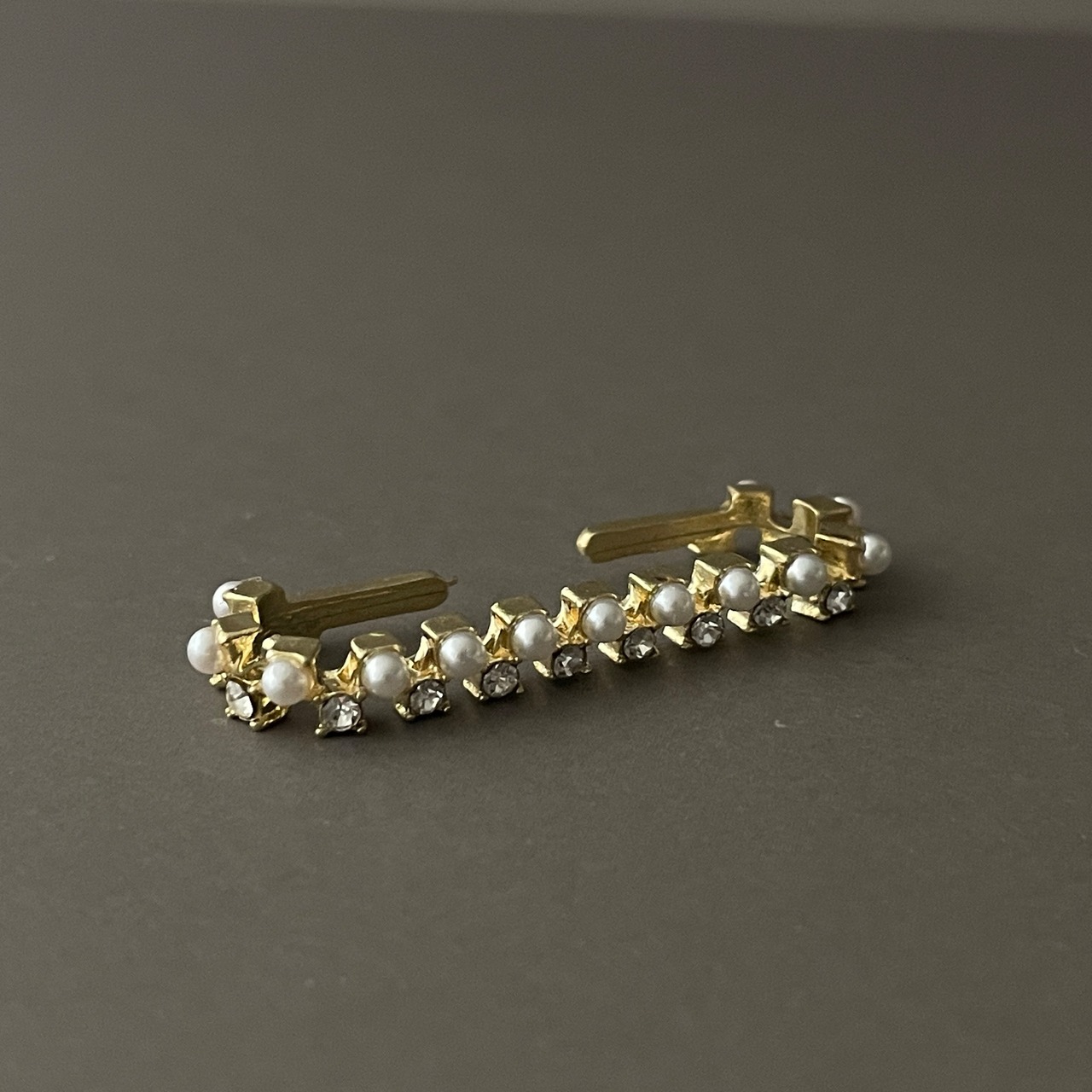 ジルコニアとパールが連なった大人上品なイヤーカフ。
