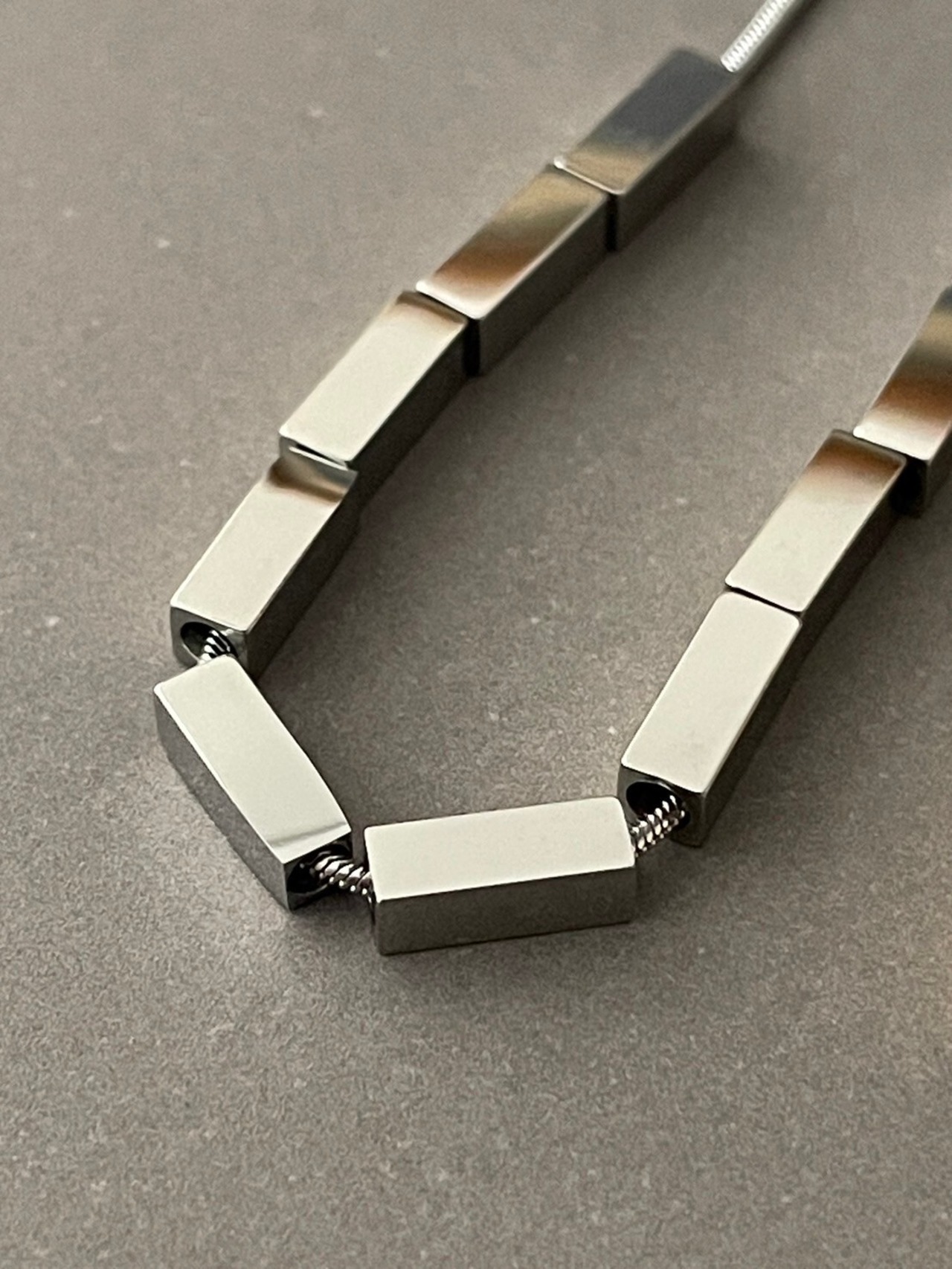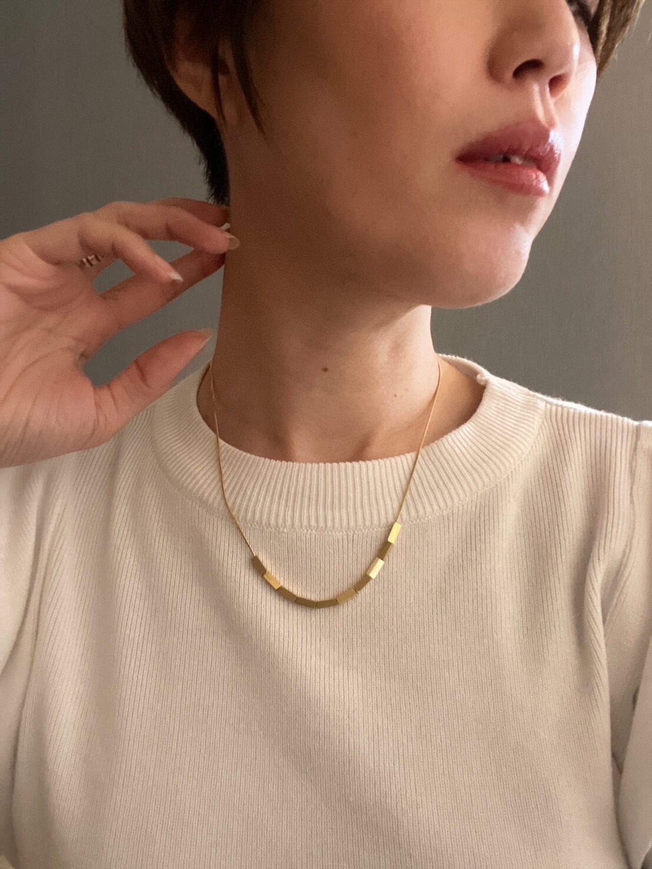 0.8mmのスネイクチェーンにスクエアのメタルビーズが並んだクールなネックレス。