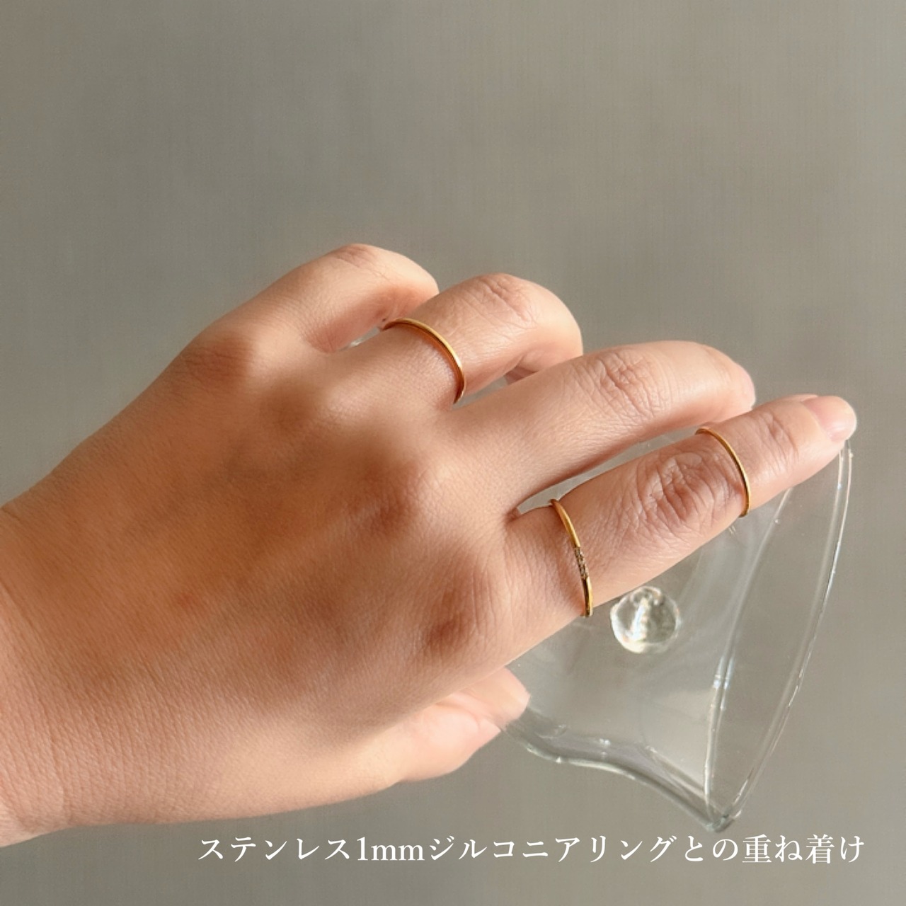 他のリングと一緒につける事で、指のキレイさがさらに引き立つのもおすすめポイントです。