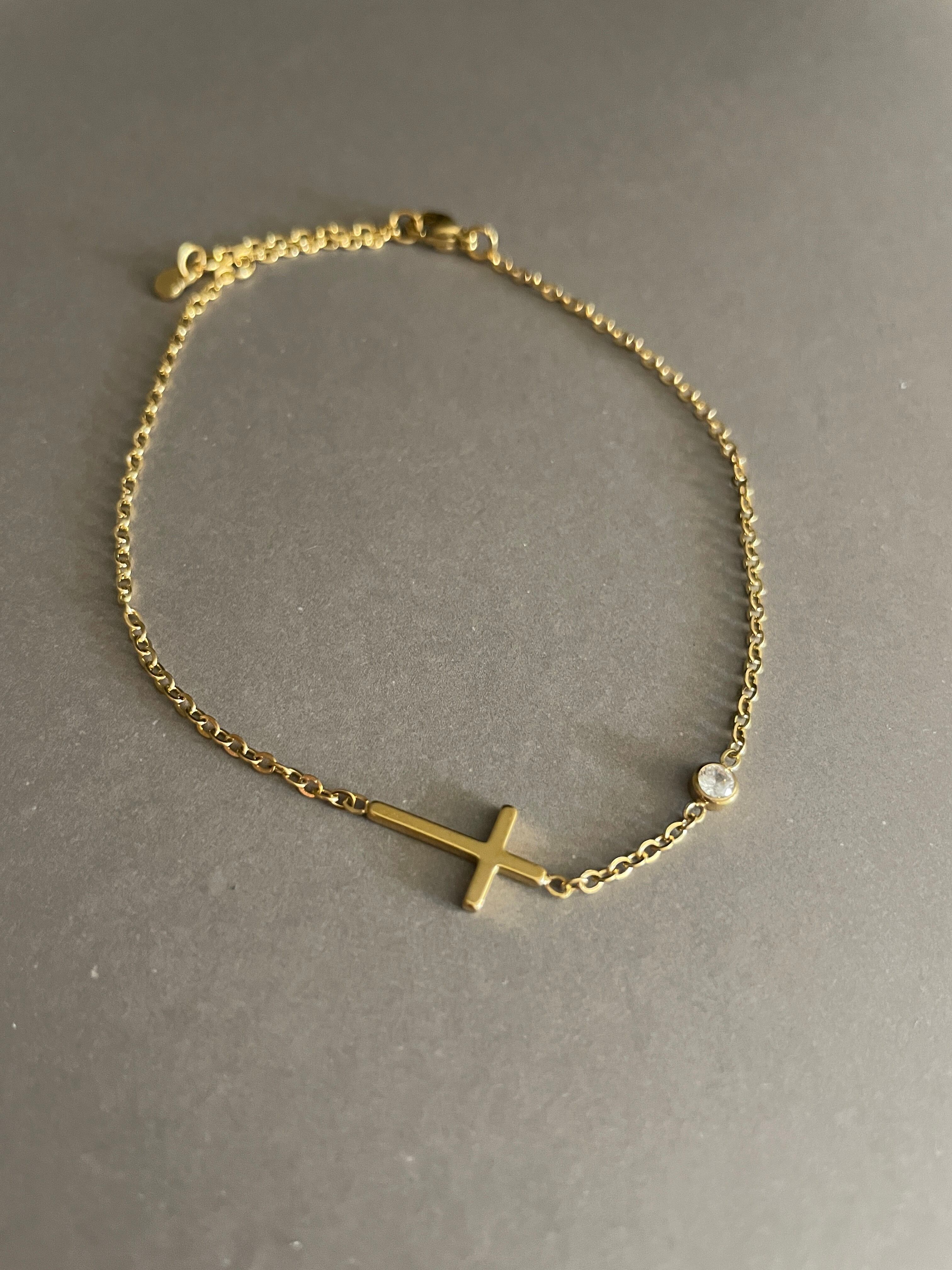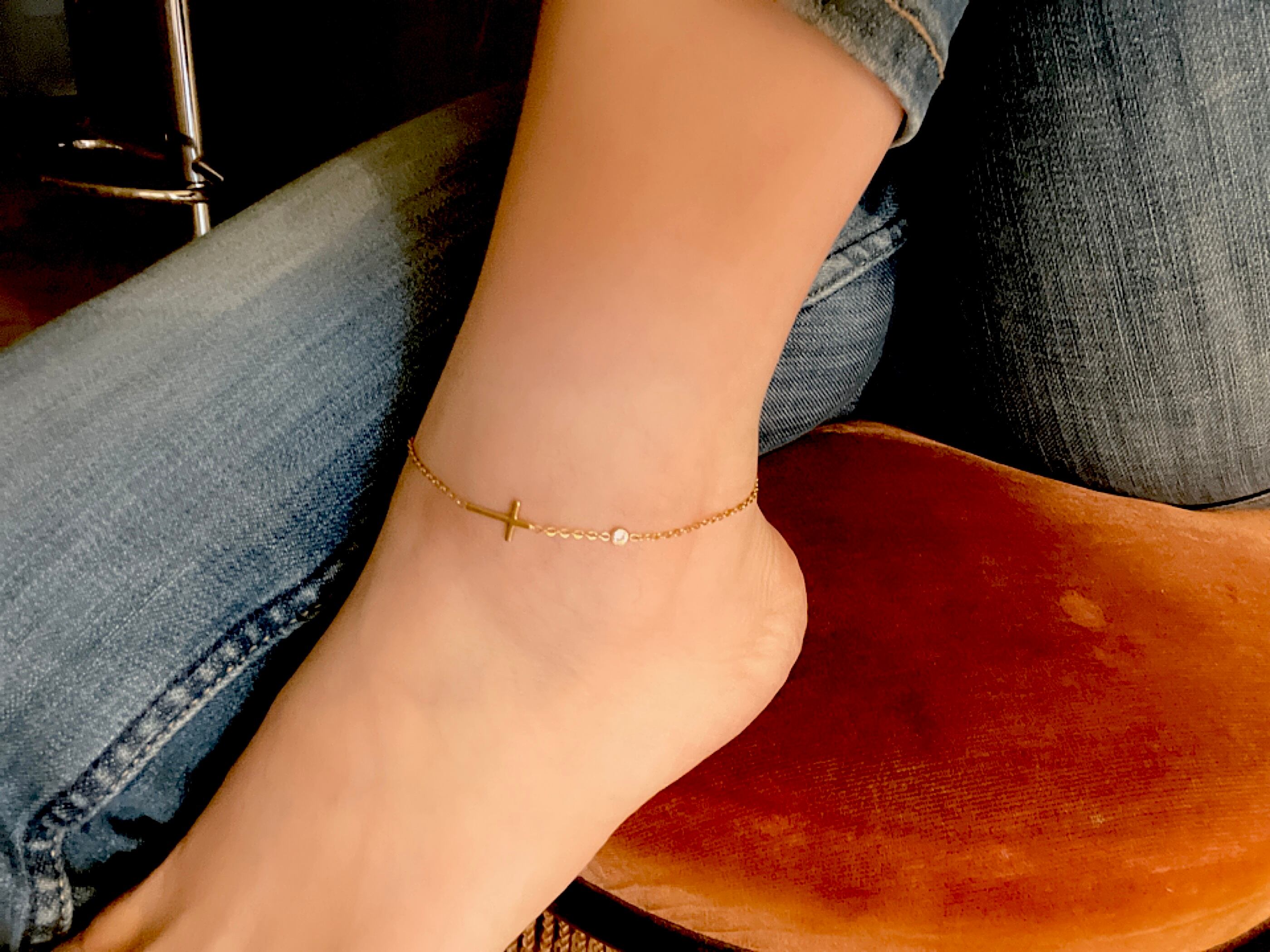 クロスモチーフにジルコニアがついたアンクレットが入荷!