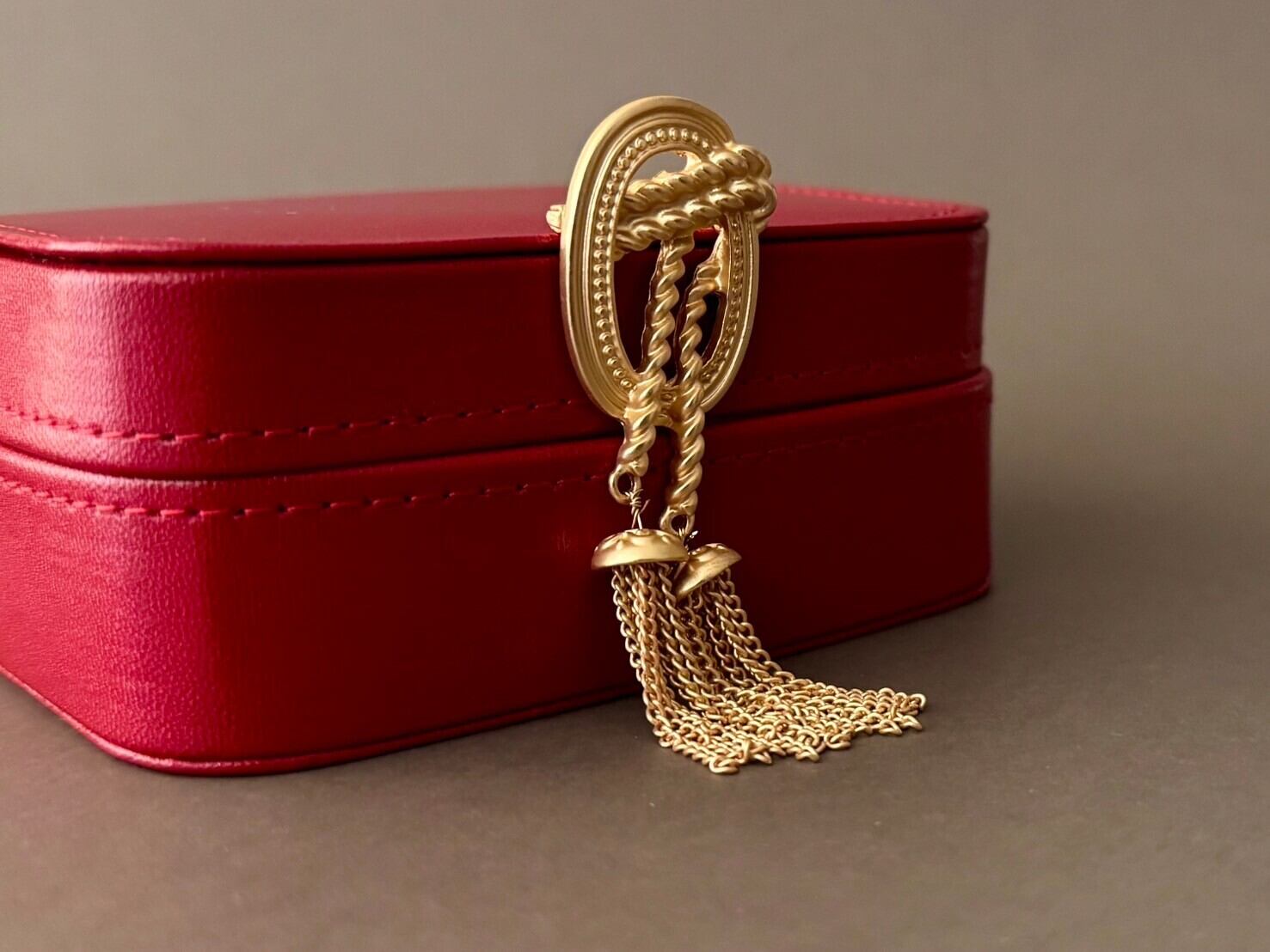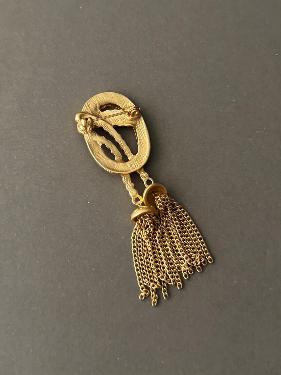 チェーンが柔かに揺れるアンティーク調のブローチ。