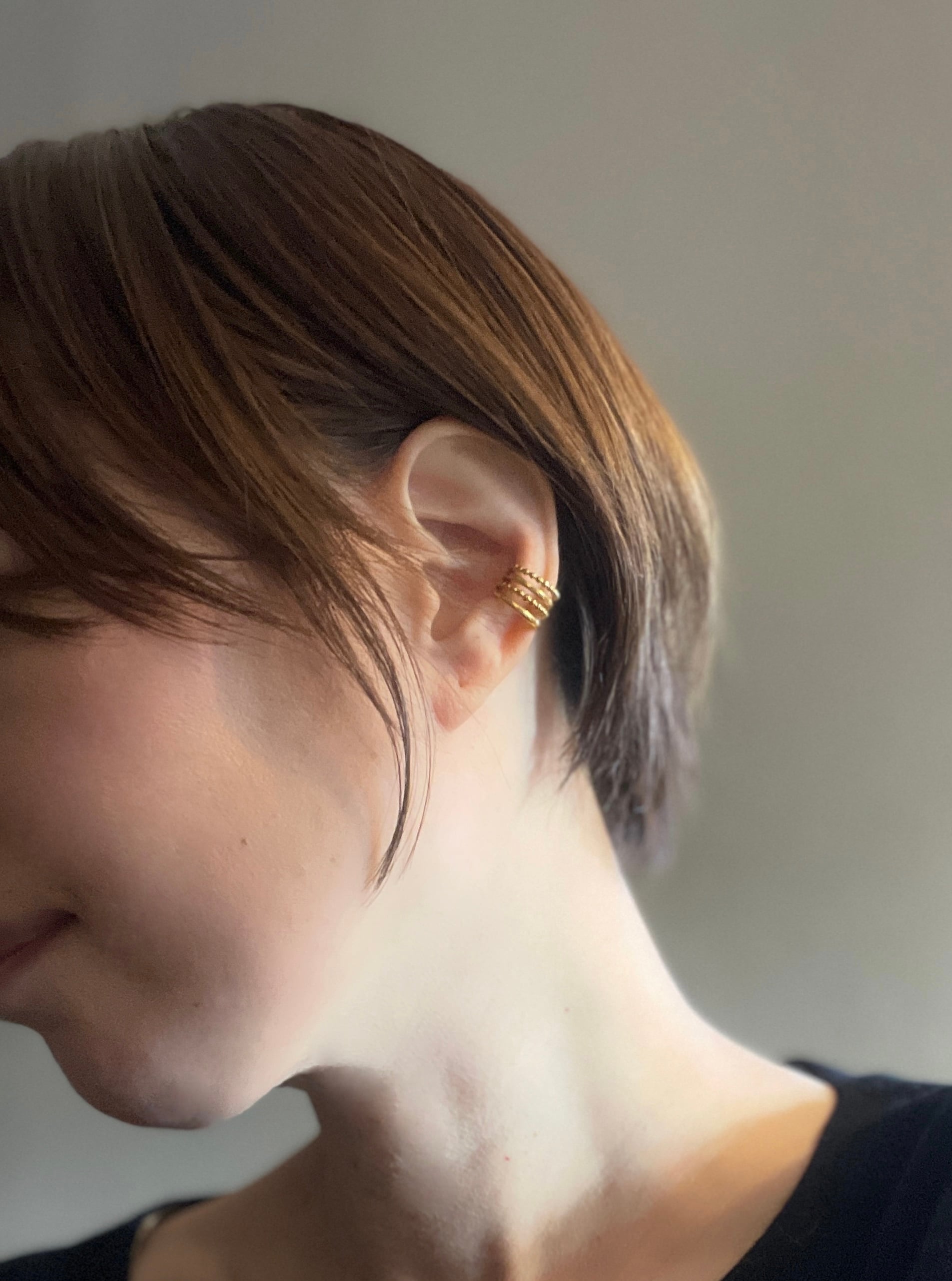 1つつけるだけで、まるでいつくもつけている様なオシャレな4連のイヤーカフ。