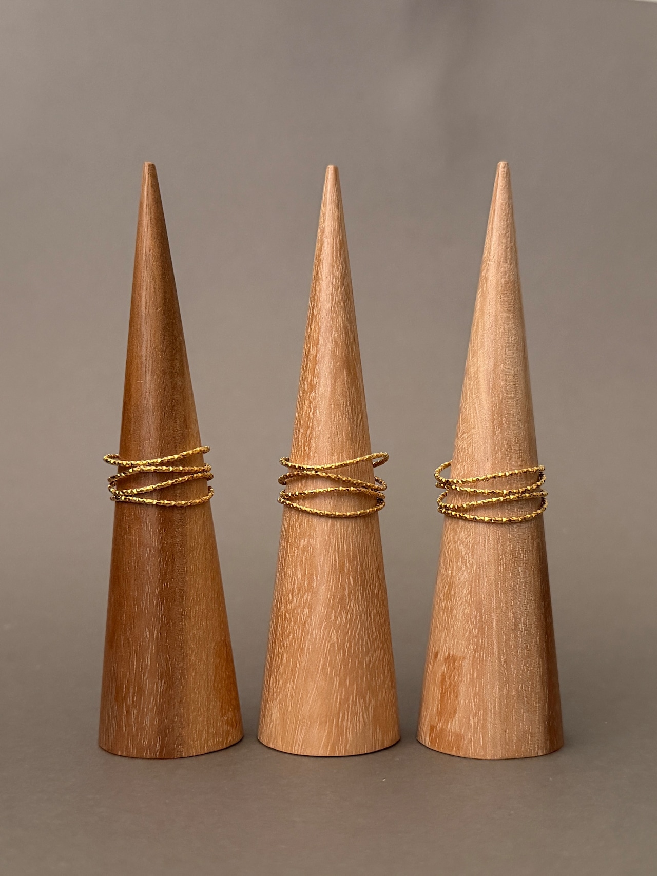 華奢なフレームが交差し、着ける角度で表情が変わるゴールドリング